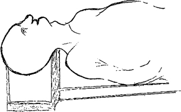 1.仰卧手术台,头后仰,下垂(图4-28)。成人患者经口腔切开引流,可采用直坐位。