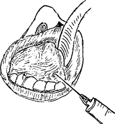 通常采用黏膜表面麻醉加局部麻醉。以浸有麻醉药的棉片置于术侧下鼻道及鼻顶部,待10分钟后,另以1%利多卡因20ml,内加1‰肾上腺素3~4滴,分别阻滞:①三叉神经上颌支;②眶下神经;③切口局部浸润麻醉。
