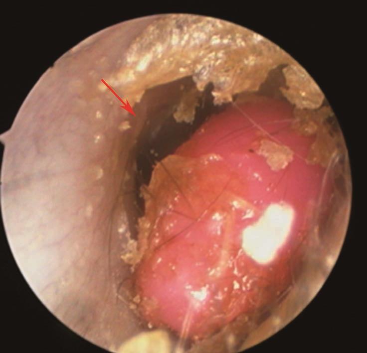 4.外伤导致外耳道深部嵌顿的异物,在无法明确异物与相邻解剖结构关系时,需行CT检查,勿强行取出,以免损伤重要结构。