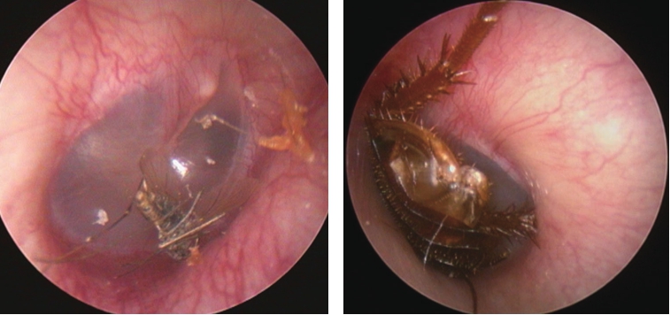 图5-1 外耳道可见蚊子、蟑螂等小动物侵入