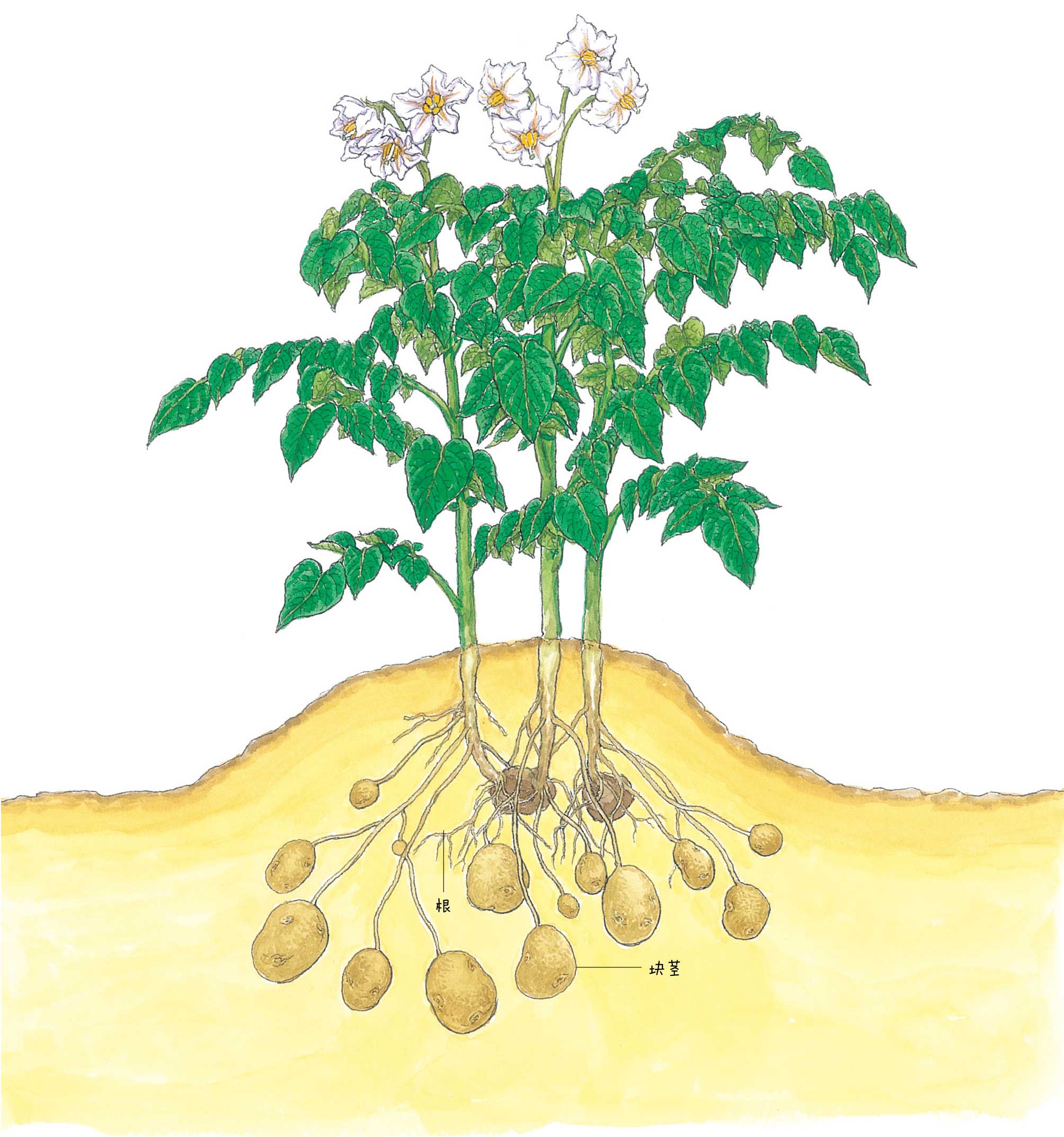 土豆便是块茎中的代表。土豆长在地下,因此总被认成是根,但实际上它是茎。