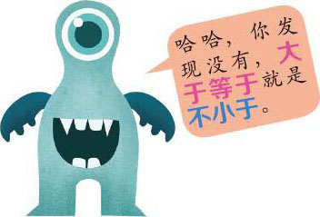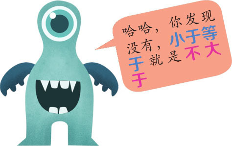 学过数学的小朋友应该都知道这个运算符,它的作用和数学课本上是一样的,用来比较两边数字的大小。