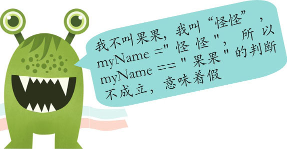 myName=="果果" ,进行条件判断,判断我的名字是不是叫“果果”。