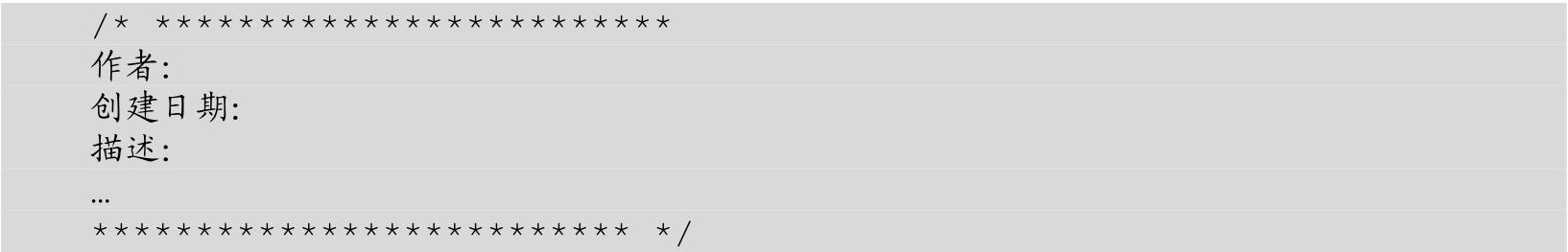 一个注释可以分散在多行上,无论“/*”和“*/”出现在程序的什么地方,/*和*/之间的所有内容都是注释。下面这个注释是用来说明代码的作者及创建日期等信息。