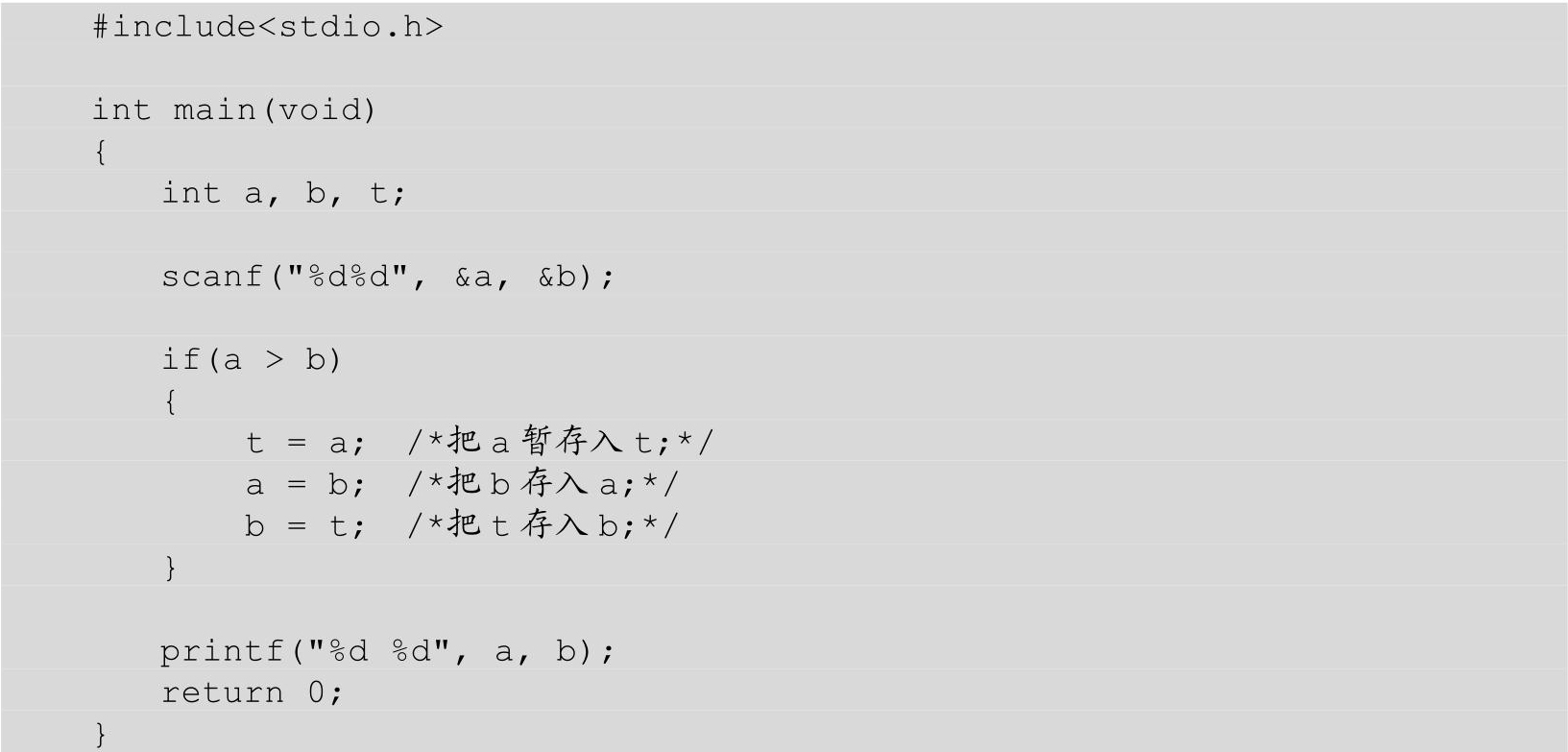 输入两个整数存入a、b两个变量,若a>b,则a与b交换内容,即:要求a中存较小数,b中存较大数,最后输出a和b的值。