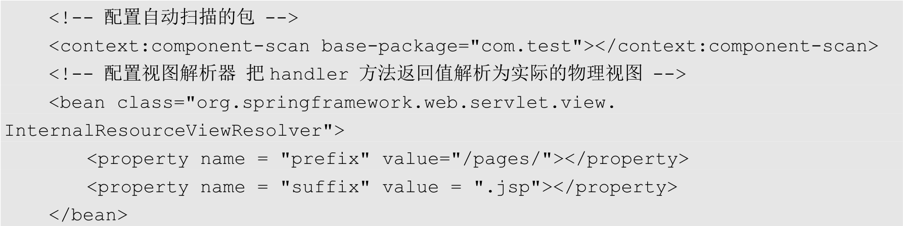(3)配置文件springmvc.xml。定义扫描包的路径和视图解析器。