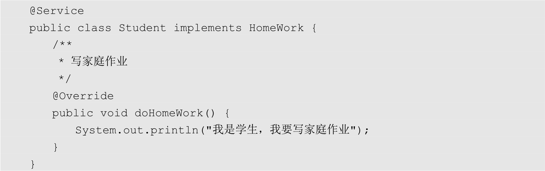 注意此时的Student类上加了一个@Service注解,这告诉Spring,让其管理这个类的对象,因此开发人员就不再需要管理Student对象了。