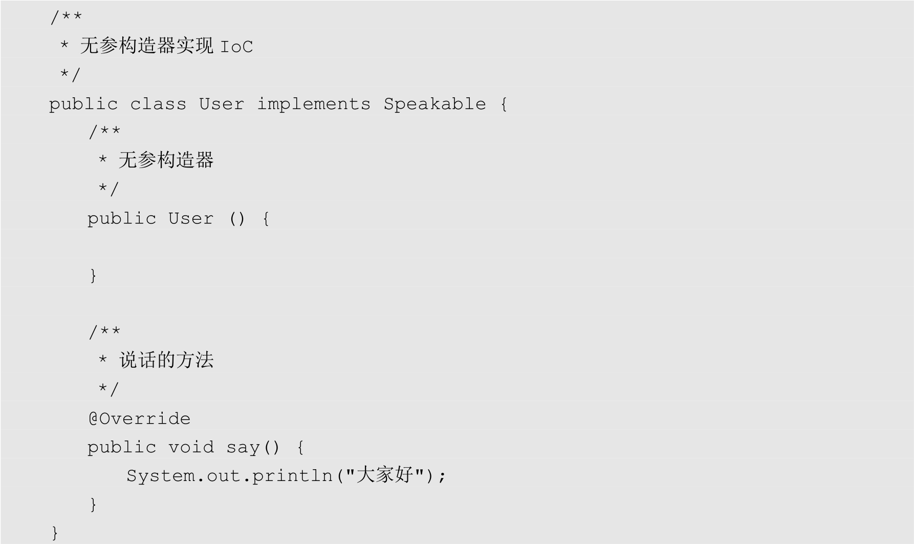 用构造器方式实现IoC分为无参构造器和有参构造器两种。下面以User和Order为例说明,User使用无参构造器的方式,Order使用有参构造器的方式,分别实现无参构造器和有参构造器的IoC。