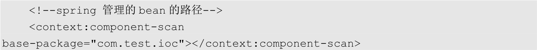 与XML方式实现的IoC不同的是,注解方式除了配置@Service注解外,还需要指定Spring对需要管理的bean目录,否则Spring不能定位其需要管理的bean。具体配置如下: