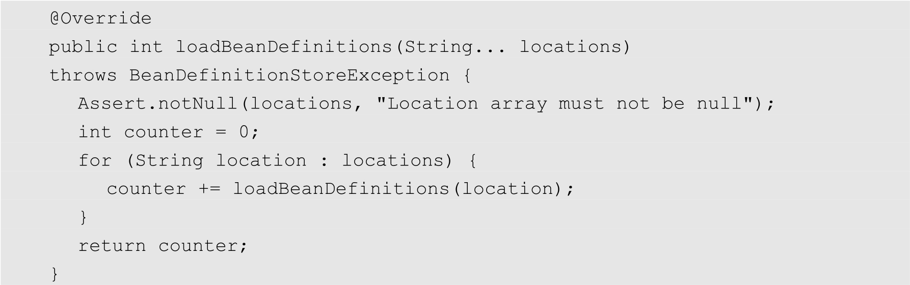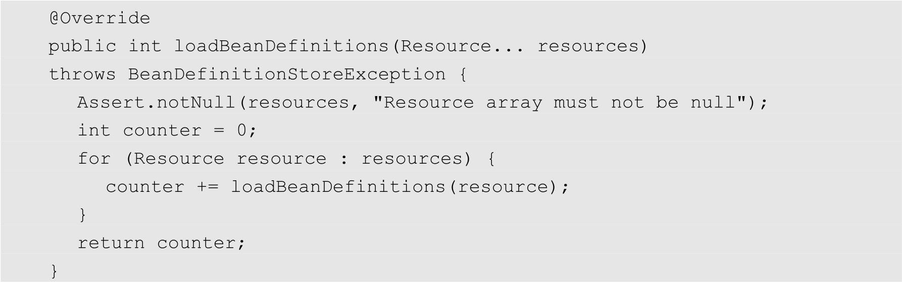 下面将分析AbstractBeanDefinitionReader的方法loadBeanDefinitions,其方法实现如下: