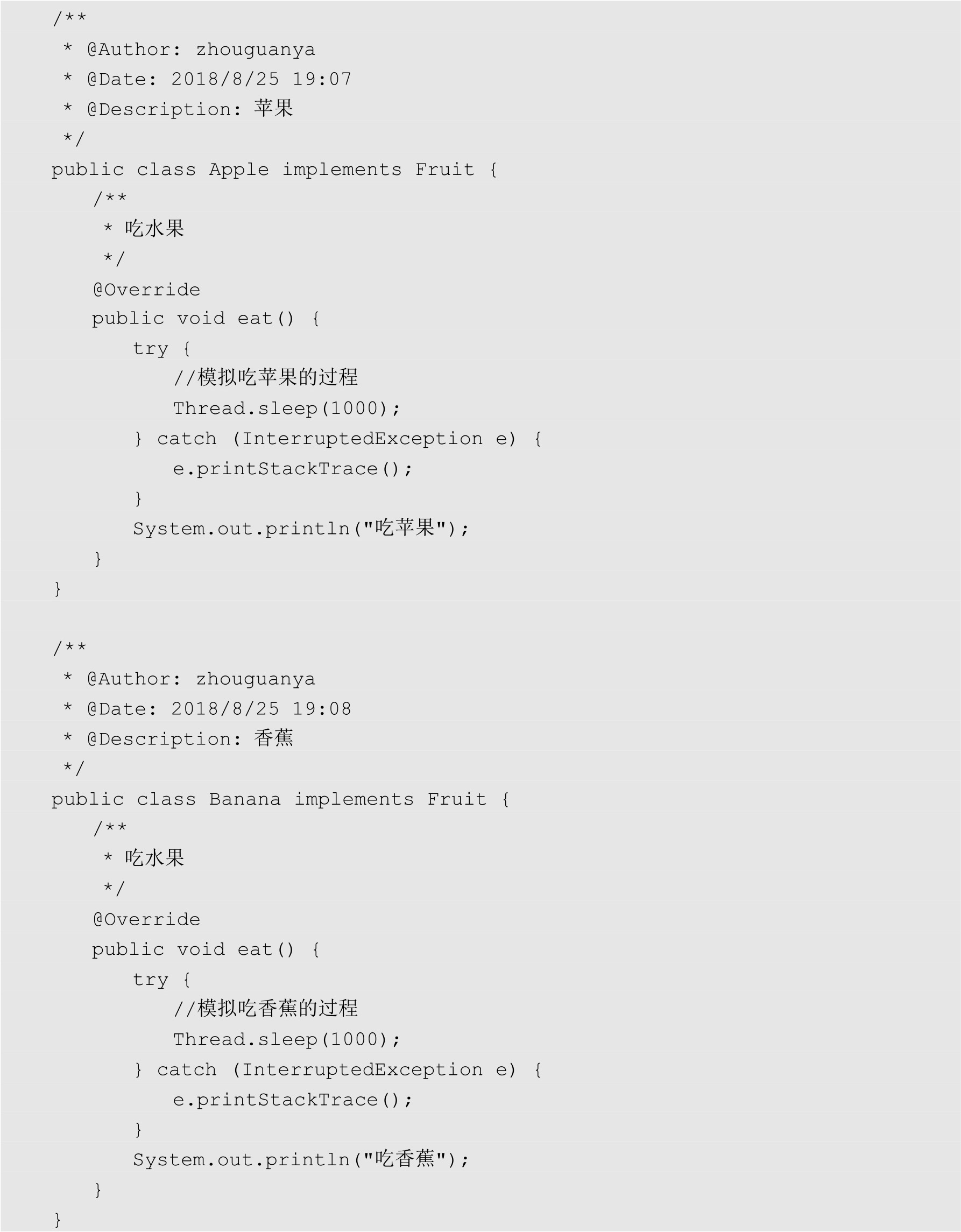 接下来,实现被代理的对象,分别用Apple类和Banana类实现这个接口,这两个类的实现如下: