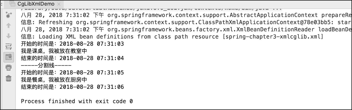 图3-5 基于CGLIB方式实现的Spring AOP测试结果