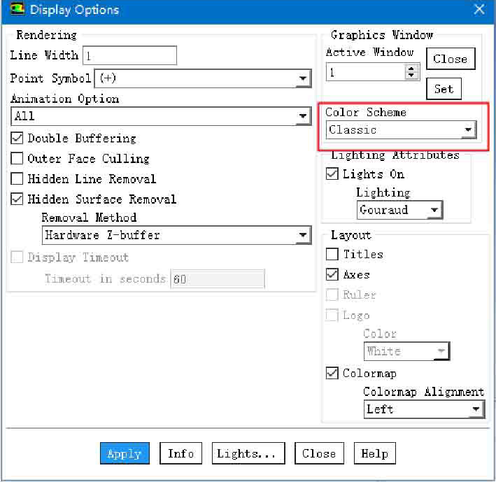 (2)在Display Options(显示设置)对话框中,将Color Scheme改为Classic。