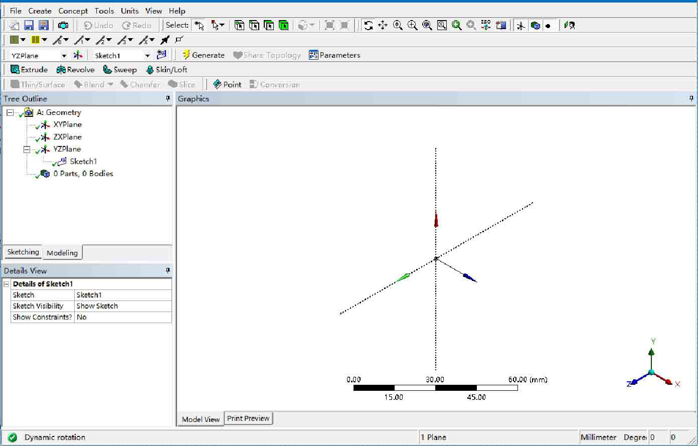 在DesignModeler中,草图都要在平面上创建,所以用户必须先建立一个工作平面用来绘制草图。用户可以根据需要任意创建平面,而且一个平面可以和多个草图相关联。
