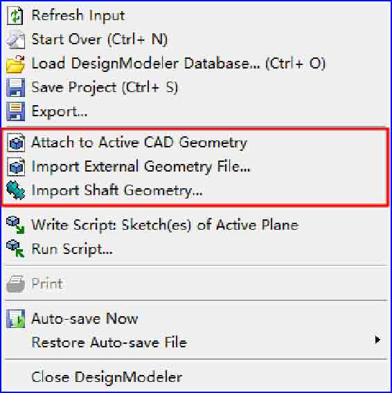 DesignModeler可导入外部CAD几何体模型,具体如图3-15所示。一般包括以下3种方式: