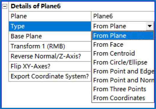 创建新平面,这时在树形目录中显示构建新平面的几种类型,如图3-12所示,具体含义如下。