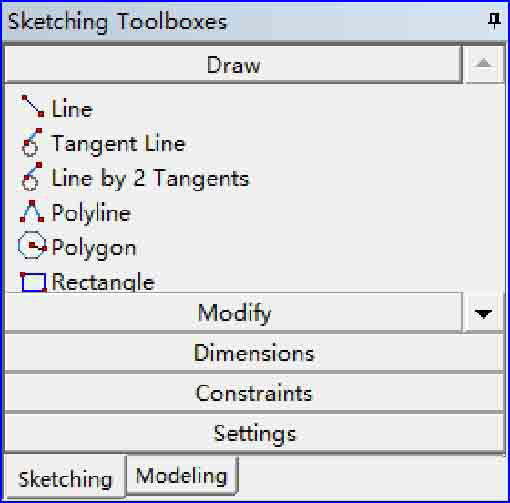 进入草图模式界面后,一系列Sketching Toolboxes面板都在草图模式界面的左边,如图3-14所示。