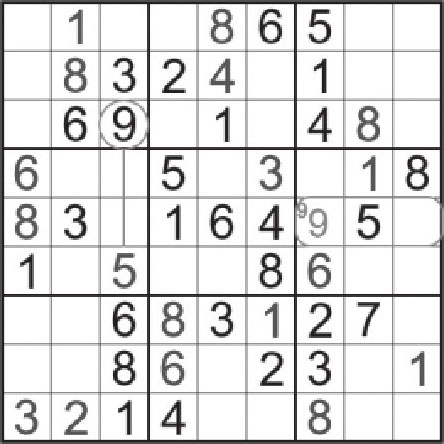 而E7和E9中恰有一格填入数字9,而它们又刚好在同一个宫内,所以第6宫内的其余位置都不可以填入数字9。