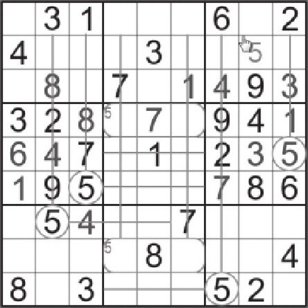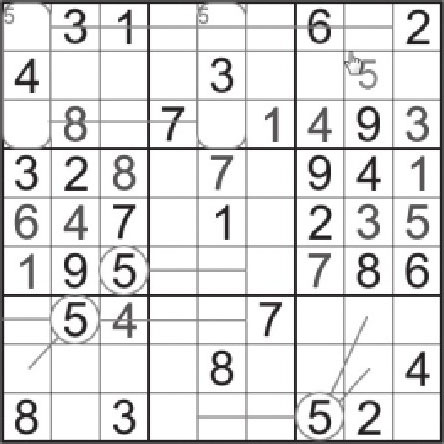 于是,我们发现,第8列内,填入5的位置只能是B8。所以B8是5。