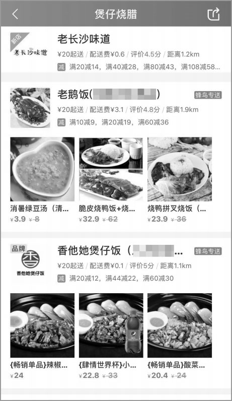 图2-27 “饿了么”App的“煲仔烧腊”版块