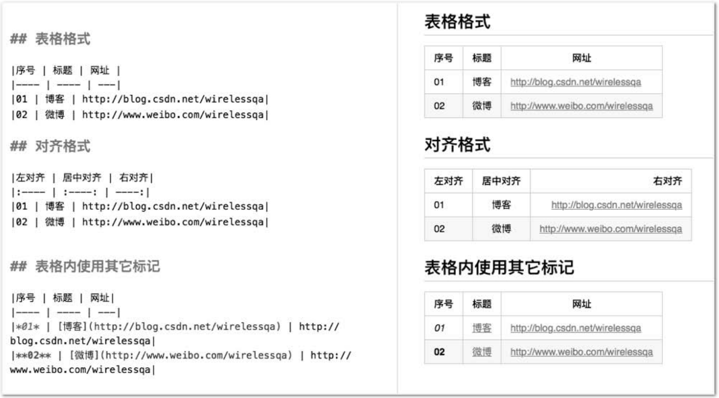 1)单元格使用|来分隔,为了阅读更清晰,建议最前和最后都使用|。