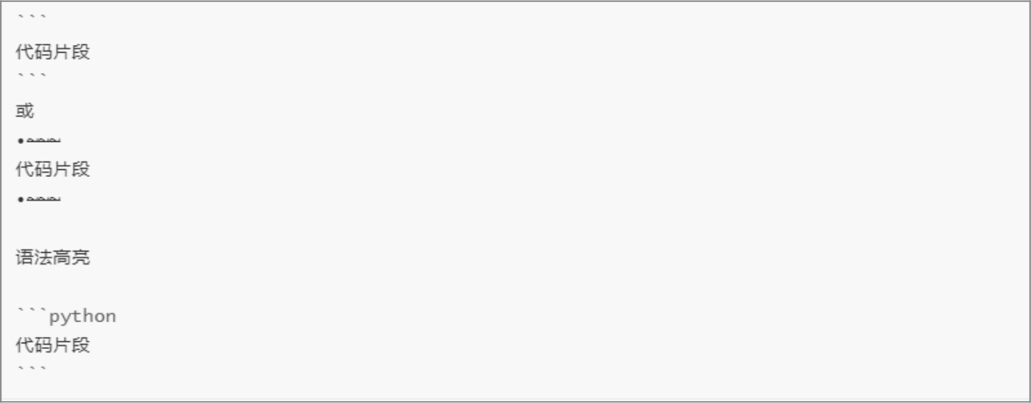 围栏代码块使用连续3个`或3个~包裹,支持语法高亮并可以加上编程语言的名字。