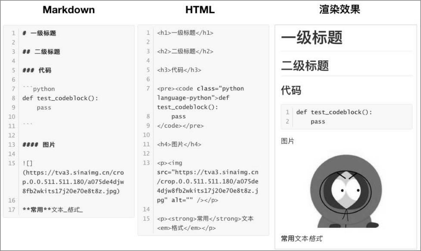 使用Markdown和HTML实现相同效果的文档时,源码对比如下图所示。