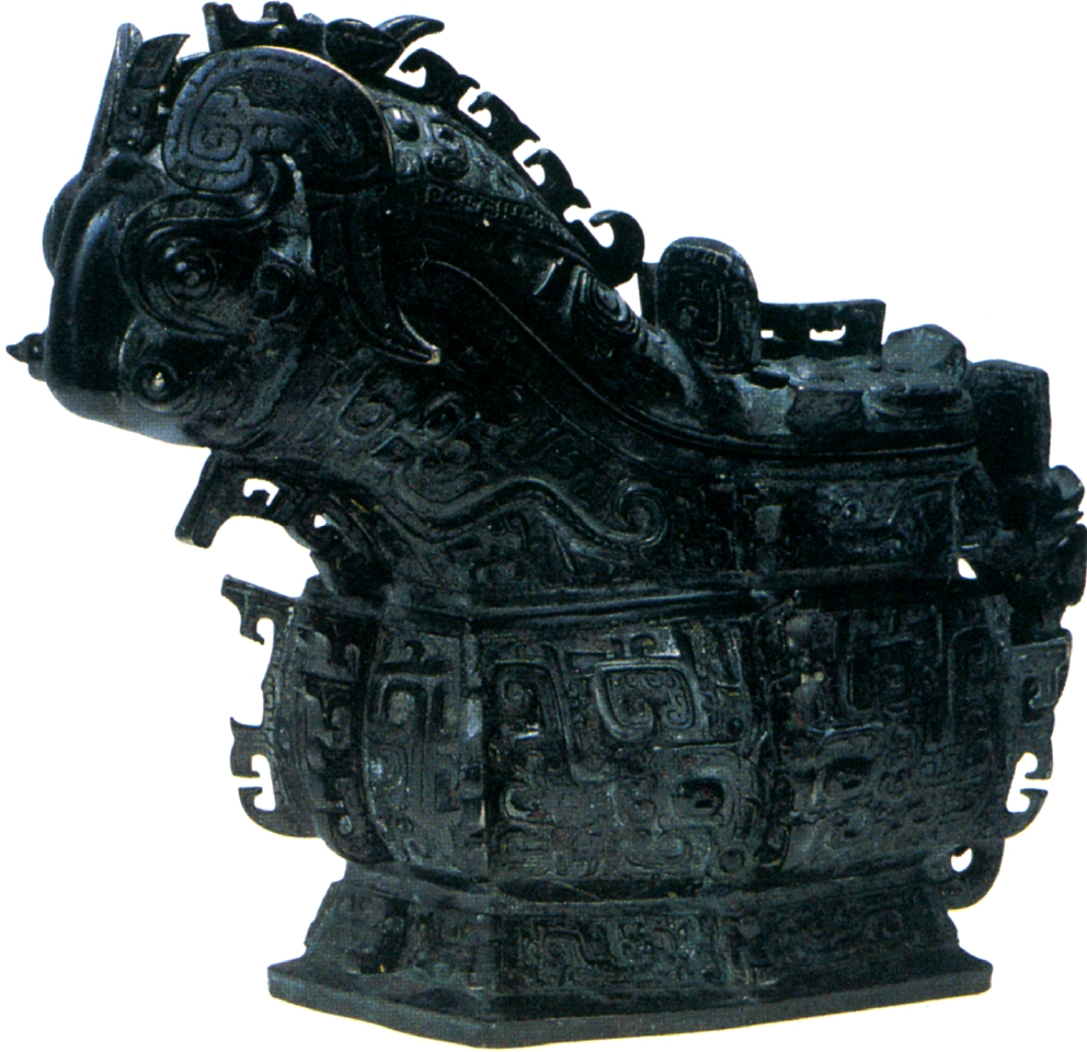一些考古学家认为开始使用青铜—铜和锡的合金—制作器物,代表着中国文化的成立时刻。毋庸置疑的事实是,用这种贵金属制作容器和兵器,是由成群的技术熟练的工匠来完成,他们的技艺可能代代相传,这些展示了早期统治者及其家族可以调用的资源种类的扩张。美国学者罗伯特·贝格利(Robert Bagley)提出,约在公元前1500 —前1300年 [1] ,模制青铜制造工艺首先在中国北方平原发展起来,这片区域以及它的附属国享受着黄河水的灌溉。商代早期,政治权力从这里向南方扩展。安阳时代之始,公元前1300 —前1000年,商王朝的政治势力削弱了,缩小到它的核心地区河南。南方的青铜器,通常是虎和象之类的动物形象,并不依赖于安阳,在相互影响的早期阶段南方适应了独立发展而区别于北方。