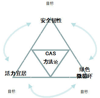 基于这一理论,我们可以构建一套理想城市“铁三角”目标模型,即一个城市发展必须权衡安全弹性、活力宜居和绿色微循环,这三者缺一不可。