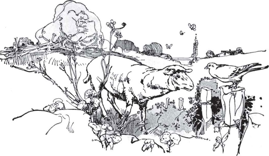 The dove flew to the sheep.