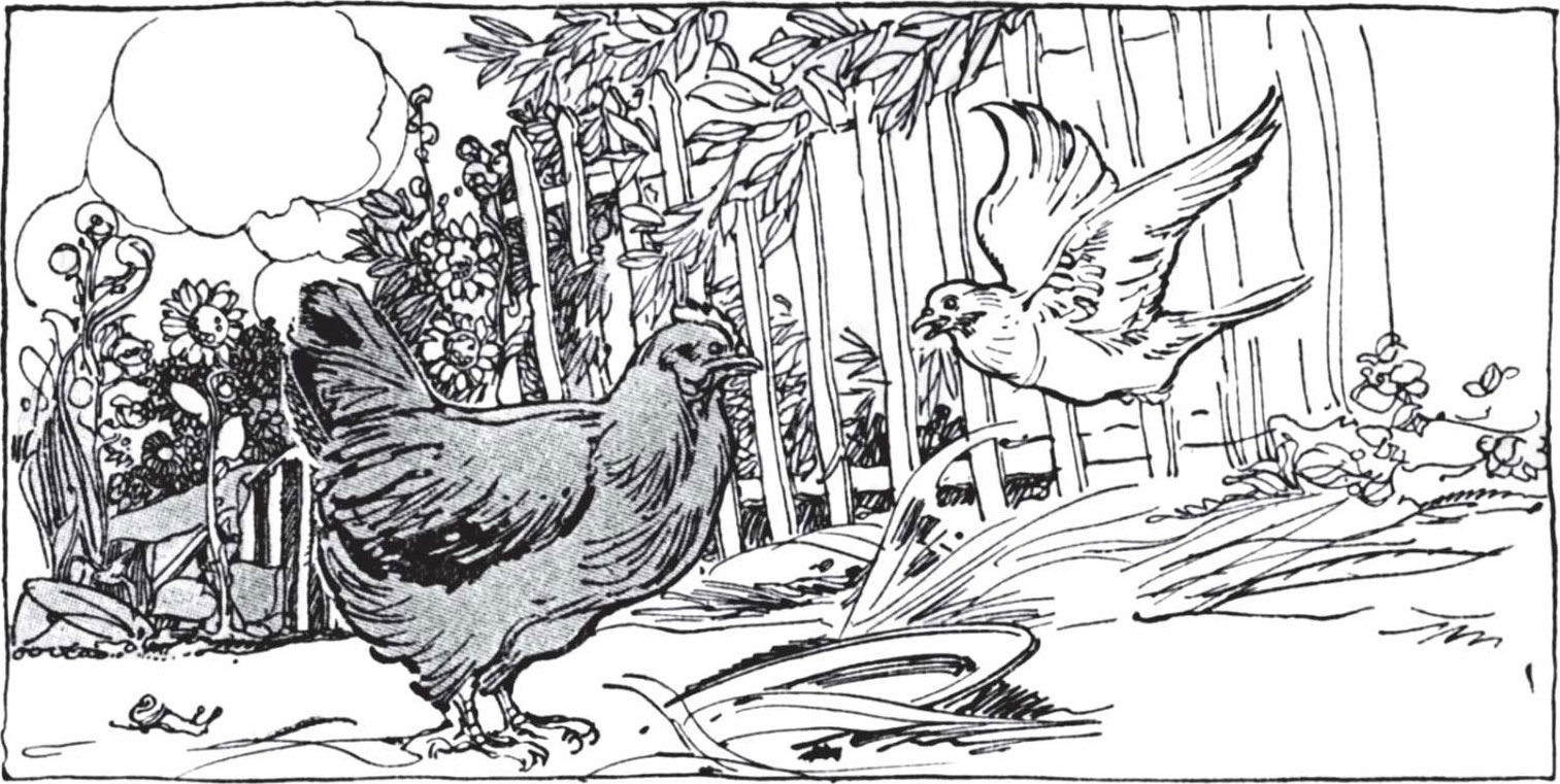 The dove flew to the hen.