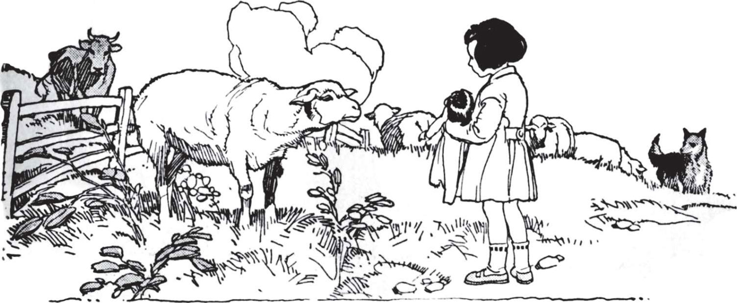 She saw a sheep there.