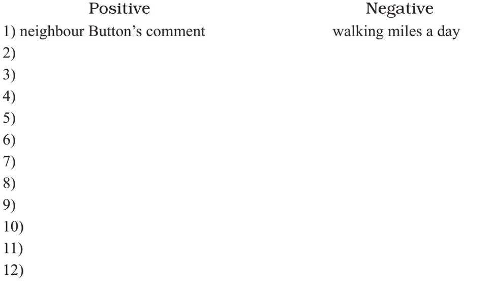 B) Positive and negative—The boy in this story had both good and bad (positive and negative) experiences. Make a list of each. Examples are done for you.