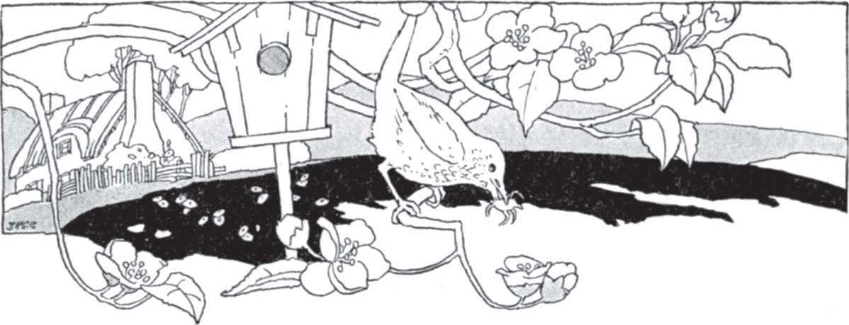 The birds and I get acquainted all over again every spring. They have seen strange lands in the winter, and all the brooks and woods have been covered with snow. So we run and romp together, and find all the nooks and crannies which we had half-forgotten since October. The birds remember the old places. The wrens pull the sticks from the old hollow rail and seem to be wild with joy to see the place again. They must be the same wrens that were here last year, for strangers could not make so much fuss over an old rail. The bluebirds and wrens look into every crack and corner for a place in which to build, and the robins and chirpingsparrows explore every tree in the old orchard.