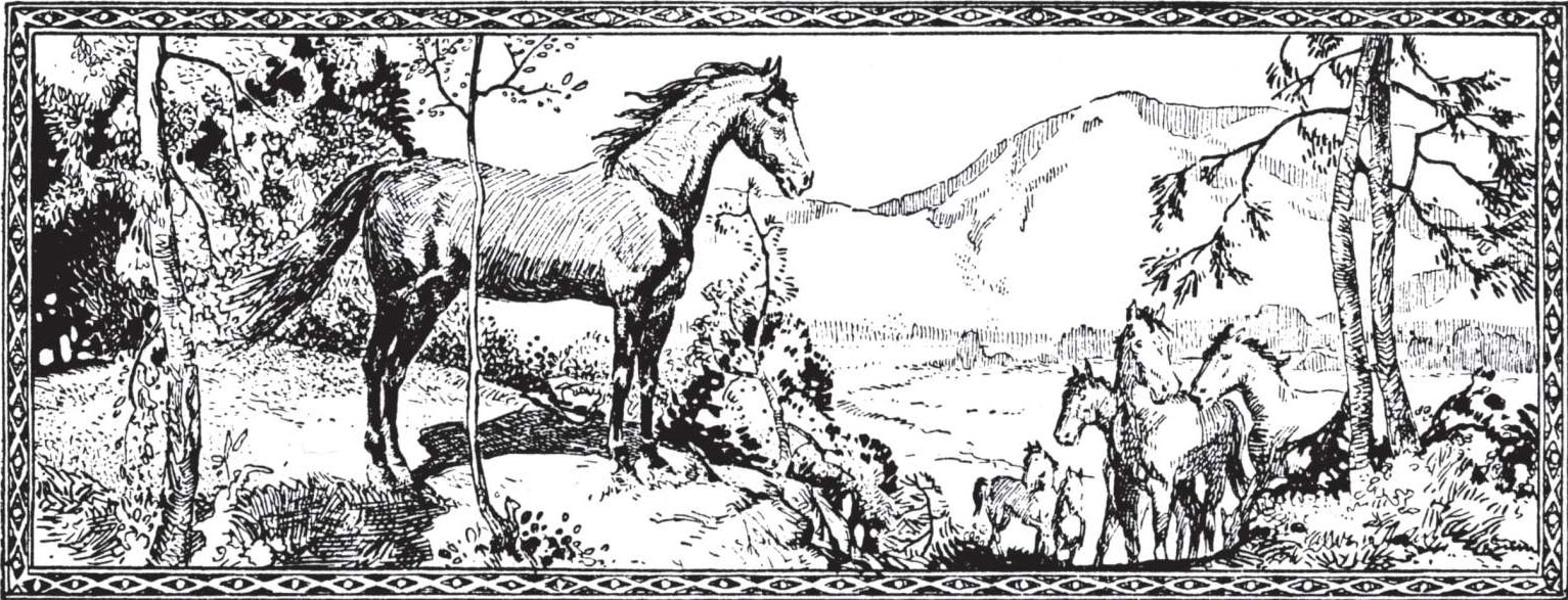 Ernest Thompson Seton (1860-1946), the artist and author, was born in England, but has spent most of his life in America. He was educated at the Toronto Collegiate Institute and at the Royal Academy, London. He was always interested in the study of birds and animals as he found them in their natural haunts in the backwoods of Canada and on the western plains of the United States, where he lived for a number of years. For several years he served as official naturalist to the government of Manitoba, Canada. Mr. Seton is well known as an artist and has illustrated many of his own books on birds and animals; he was also one of the chief illustrators of the Century Dictionary. He has written many books about birds and animals, among which are: The Biographyof a Grizzly ; Wild Animals at Home; and Wild Animal Ways, from which “Coaly-Bay,the Outlaw Horse” is taken.