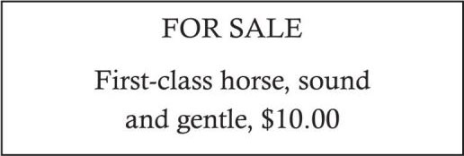 And so the thing was settled. The ranchman said, nothing about CoalyBay being vicious as well as cunning, but the gardener found out, the very first time he tried to ride him, that the horse was as bad as he was beautiful.Next day a sign appeared on the gardener’s gate: