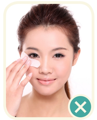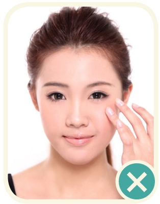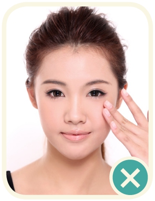 正确做法 对于用促进循环原理代谢黑眼圈的产品,尤其讲究大范围使用,上可达眉下,可外可达太阳穴,下达颧骨。