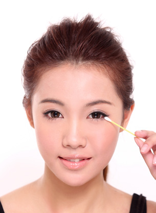 步骤3 滑向眼袋,不要离睫毛根部太近,涂的范围可以大一些。