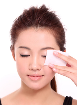 步骤3 确保卸掉睫毛膏后,再用浸透卸妆油的化妆棉卸眼影等。这个时候长时间闭眼,也不会有太多的残妆印在下眼皮上了。