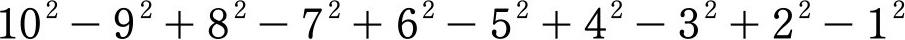 从首项开始两两组合,可将算式转化为两个平方数相减的形式,如第一项为:(10-9)(10+9)=10+9。