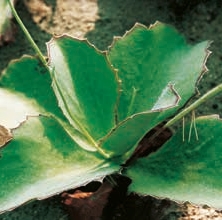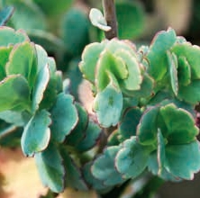 株高 60 厘米,株幅 30 厘米。叶片卵形至披针形,浅绿色,具白霜,边缘红色,长10~15 厘米。聚伞状圆锥花序,直立至展开,花管状至坛状,黄色,花期春季。