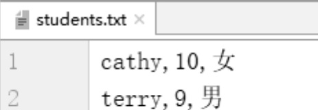 ·如果文件不存在,会先自动生成一个空文件。程序运行后,在当前目录下就会生成students.txt文件,文件内容如图1-11所示。