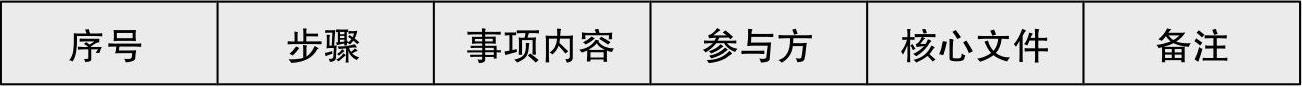 另一个建议是,配合上述交易结构图,我们通常还会制作一张工作流程表,表头如下: