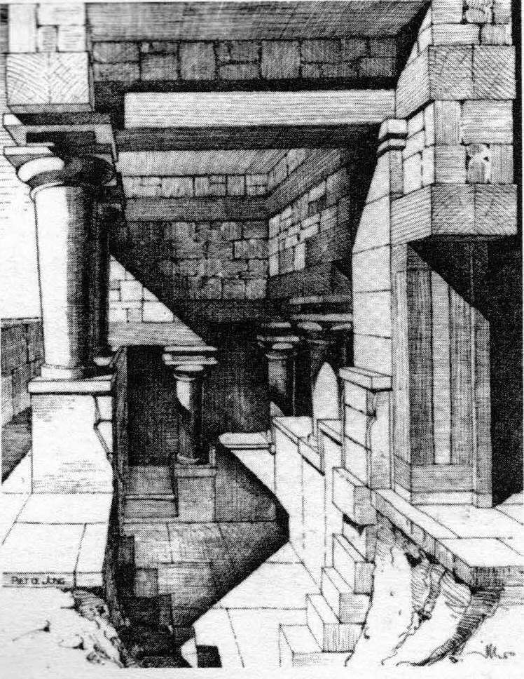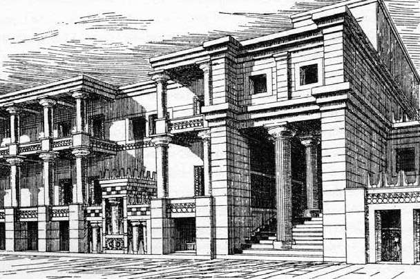 图5 克诺索斯,中庭西侧三重神殿的复原图