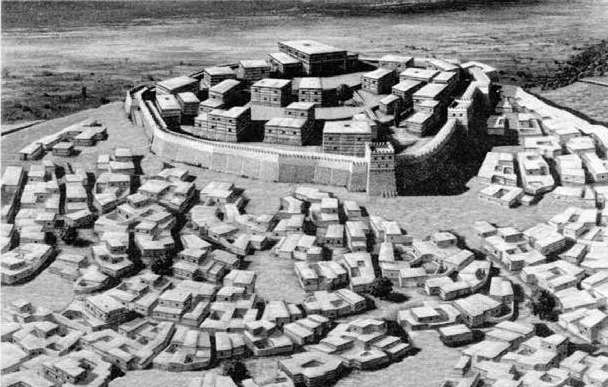 图7 特洛伊第六层的复原图:堡垒和宫殿建筑,以及低处城市的一部分