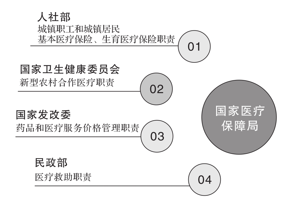 为了解决上述问题,国家组建了国家医疗保障局,进行了“四权归一”的资源整合(见图1-6)。实现了医保管理职能由一个机构统筹,在药品招标(议价)、医院控费、监管等方面统一发力,从而充分发挥医保杠杆作用,确保医保资金合理使用、安全可控,统筹推进医疗、医保、医药“三医联动”改革,即对药品的使用方(医疗机构)、支付方(医疗保障体系)和生产提供方(医药生产流通企业)进行联动式改革,保障病有所医。
