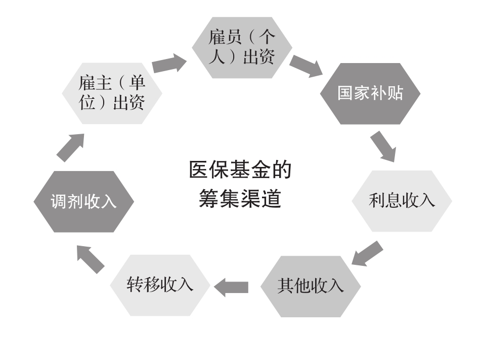 筹资机制是建立医疗保险制度的基础,也是保障其得以正常运行的关键环节(其筹集渠道的主要构成如图1-7所示)。