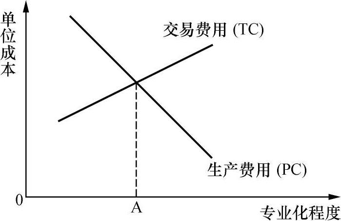 图1-6 专业化程度与交易费用和生产费用的关系