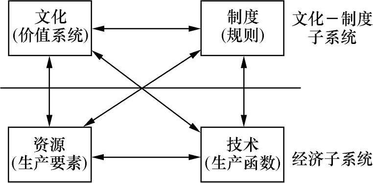 国际知名经济学家、日本东京青山大学教授速水佑次郎提出一种理论框架,试图对经济发展的原理做出解释(图 1-2)。