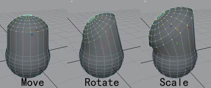 编辑构成元素(Vertex、Edge或者Face),不外乎使用Move Tool(位移工具)、Rotate Tool(旋转工具)或Scale Tool(缩放工具)进行变换操作。